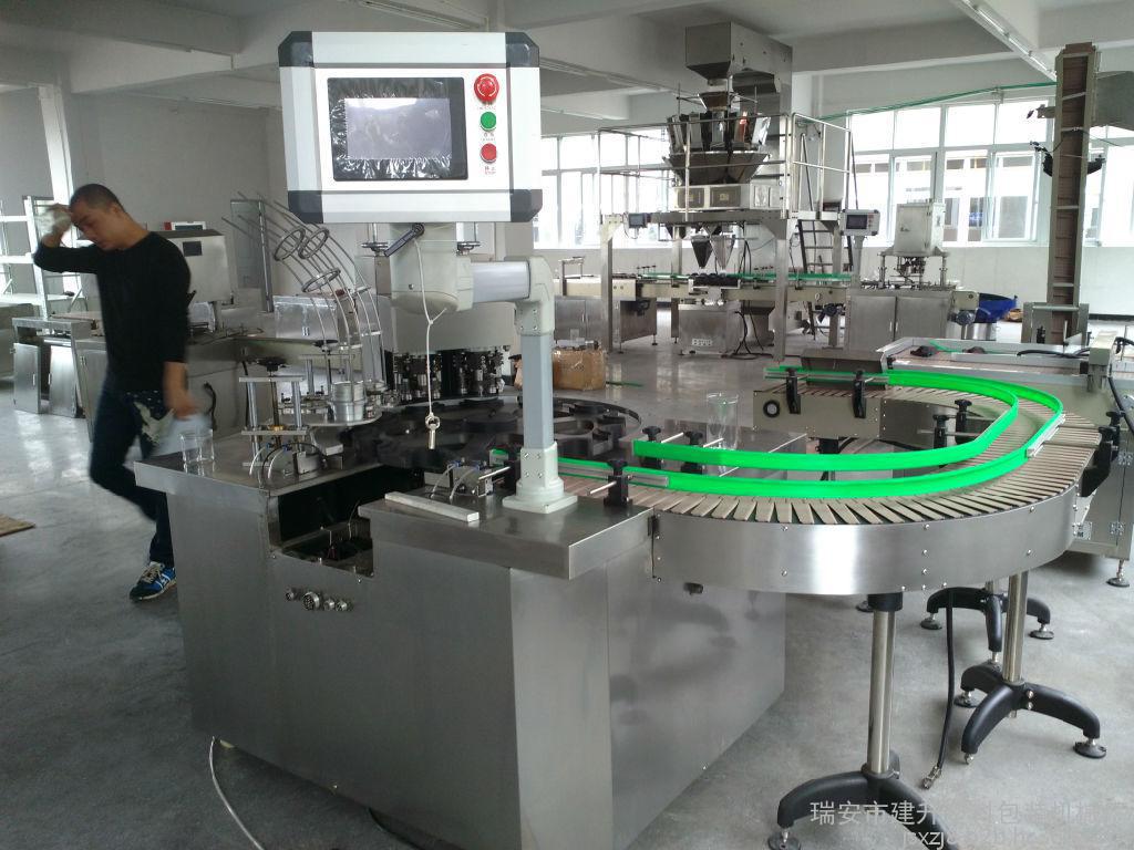 | 设备特色: U形通道 剔除倒瓶同步海绵轮分瓶机构轮附式滚压瓶身使标签附固 ■ 专用于西林瓶的贴标使用。 ■ 分瓶机构使用同步海绵输无级调速,可任意设置分瓶间距。 ■ 前段采用转盘式轨道供料机构,供料平稳,缓冲空间大。 ■ 输附式滚压瓶身,使标签附著更加牢固。 ■ 后段收集平台便於成品的收集,整理和包装。 **大优势: ■ 使日系伺服马达,速度极高,稳定性优。 ■ 贴标速度可达400瓶/分,高於其他厂家同型机种。 技术参数: ■ 电压规格:AC220V 50/60HZ单相 ■ 耗 功 率:2.5KW ■ 贴标速度:400瓶/分 ■ 帖标精度:±1 mm(被贴物与标签本身的误差除外) ■ 印字机用气源:5公斤/平方厘米 ■ 适用容器范围:外径16-80 mm,高度35-90 mm ■ 适用标签范围:高度15-90 mm,长度23-300 mm