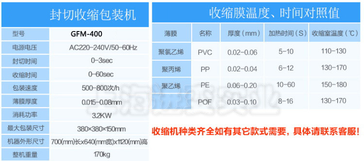| 适用收缩膜 | 1~9999 |