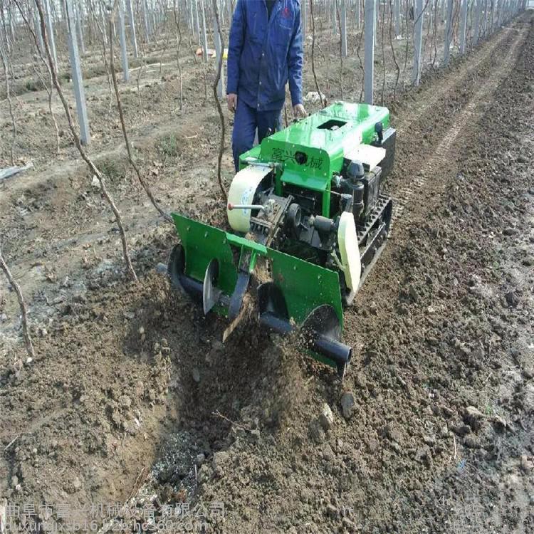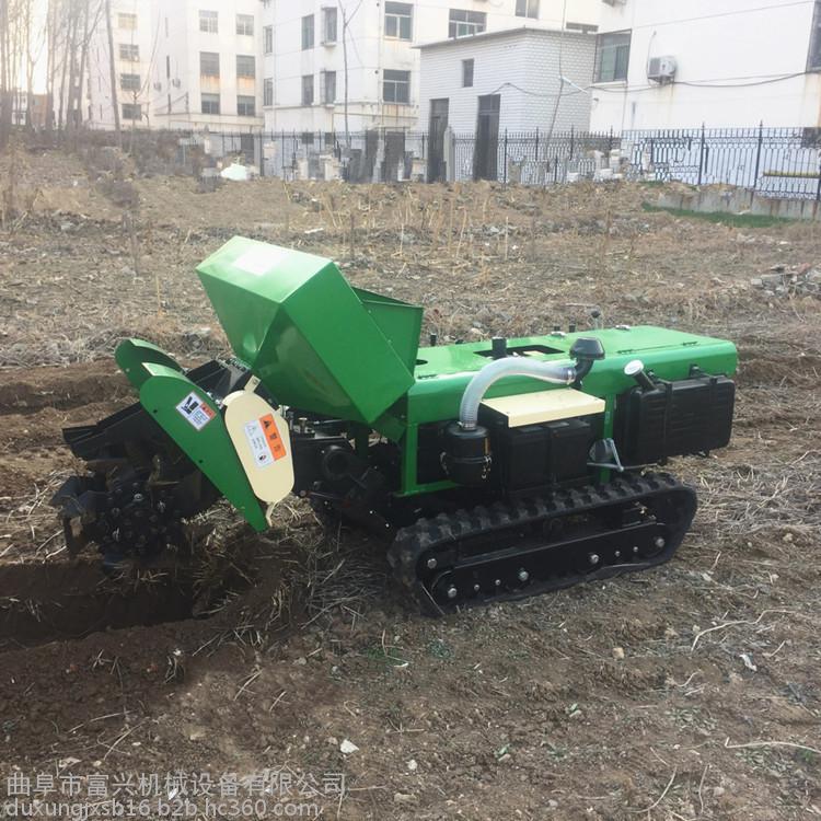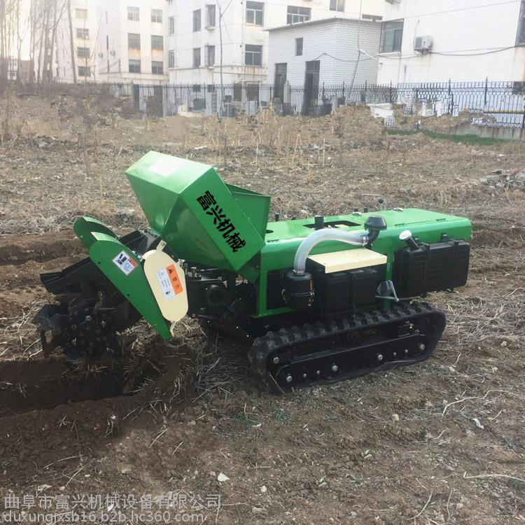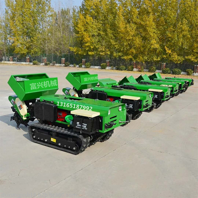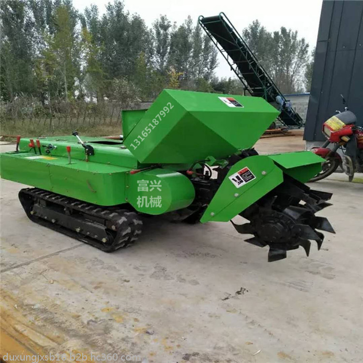 多功能 履带式开沟施肥机安装上不同的配件可以进行单独旋耕、回填、单独开沟、施肥、也可混合搭配使用。产品结实耐用,性能优越,操作方便.耐用:机身加厚,密,履带式行走,可进行原地转向。刀具都是加厚75号猛钢锻造,非常耐磨耐用,工作效率高.(1)施肥,有机肥粉状肥可以调整到每米低半斤的施肥量