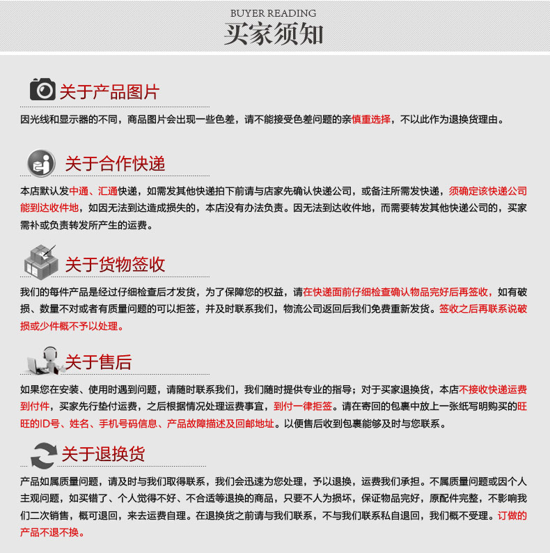 快递问题:量少本店默认快捷快递,安能物流,天地华宇,量大发物流中心,买家支付运费,到货自提。运费旺旺联系客服商议下在购买。凡是不与店家沟通直接拍下者本店是不予发货的。谢谢!
