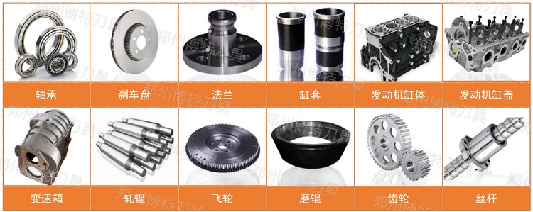 被加工材料:铸铁,硬钢,灰铸铁,高锰钢,淬火钢,高铬铸铁等。