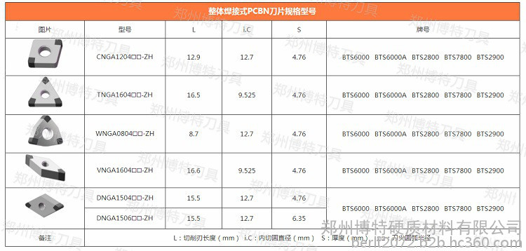 PCBN整体焊接式刀片是整体烧结PCBN小刀粒在高真空、高温环境下钎焊在数控合金基体上。刀尖部位是整体PCBN 材质,带中心孔定位。
