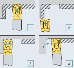 MGT刀具一个重要优势**是可以在两壁间进行加工,请注意,在复合加工中,加工状态改变时,需要将刀具稍微向后移动再进行连续加工。