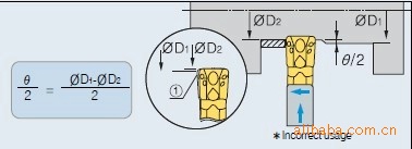1.**小切深不应小于刀片的刀尖半径。 2.**大切深取决于**大切削可承受负载。