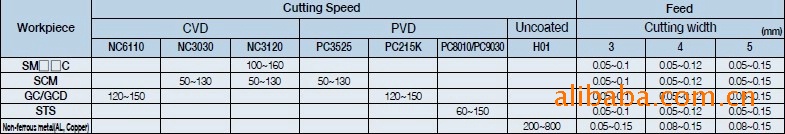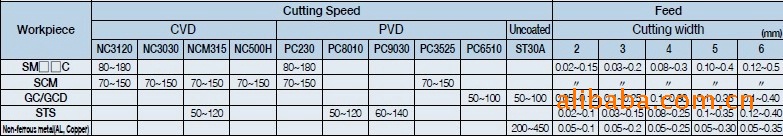 1.始终建议您的加工参数要在高耐推荐参数范围之内。2.刀片**大进给率取决于刀片自身的特点以及加工所能承受的切削负载