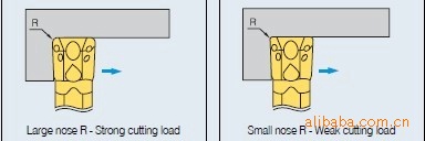 3.在高速加工领域较小的刀尖半径,缩短的刀片的寿命**大进经率不应该超过刀具的刀尖半径。