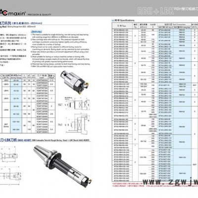 昆山夆和机械设备贸易有限公司,成立于2012年,位于中国大陆经济实力**强县级市昆山市.公司为台湾鉝錡RBH精密镗刀,RBH对刀仪,RBH精密虎钳,CBM精密搪刀,台湾ACMAXIN精密镗刀, ACMAXIN精密虎钳大陆总代理,同年设立技术服务部及产品维修部.我们在所擅长的领域配合客户不同的需求,提供高稳定性,高性价比的切削刀具。