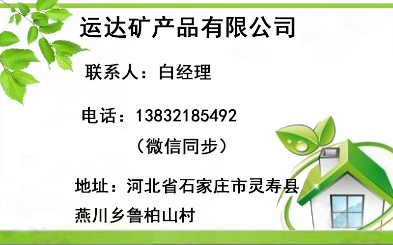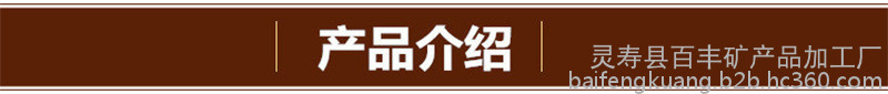 灵寿县百丰矿产品加工厂位于山清水秀的太行山脚下。公司地理位置优越,南距省会石家庄60公里,东距天津港口320公里。它是自然矿物类建材型产品的生产者。它以科技创新为先,非金属矿材料开发为本,以技、工、贸等多方面人才为核心,成为集研发,矿采,加工,销售为一体的新型集成企业。 灵寿县百丰矿产品加工厂是石英砂、圆粒石英砂、彩砂、萤石粉、云母粉、重钙粉、高岭土、岩片、负离子粉、蛭石粉、果壳木粉等产品专业生产加工的公司,拥有完整、科学的质量管理体系。灵寿县百丰矿产品加工厂的诚信、实力和产品质量获得业界的认可。欢迎各界朋友莅临参观、指导和业务洽谈。