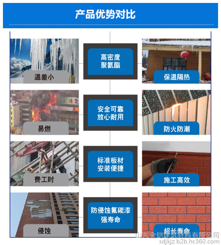 3、即使是在严寒地区,性能稳定的外墙保温装饰一体板也毫无渗水变形之忧,延长了建筑的使用寿命。