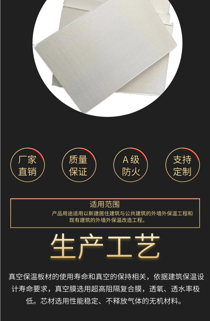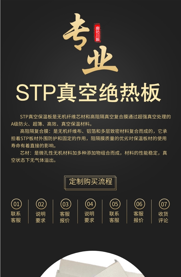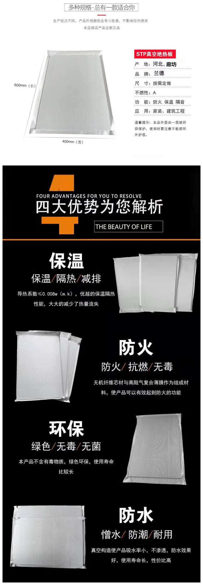 6、无毒、绿色环保,使用寿命长。 STP保温板的适用范围:新建、扩建民用及公用建筑外墙与屋面的保温工程,尤其适用于既有建筑的节能改造工程。