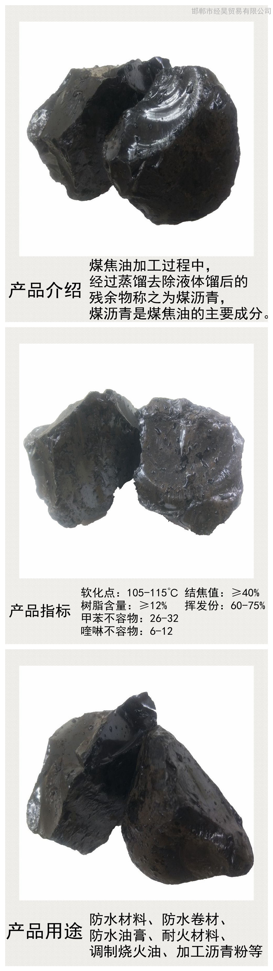 专业生产经销:煤沥青、中温煤沥青、高温煤沥青、球状沥青、改质沥青、沥青粉、片状沥青、烧火油、工业萘、洗油等产品。具有雄厚的技术实力、拥有先进的生产设备,使产品具有国际先进水平。我们的产品远销于全国各地,深受广大新老用户青睐。丰富的经验、完善的检测、周到的服务、良好的信誉,是我们的经营宗旨,我们真诚的希望和广大客户建立良好的合作关系,为用户提供满意合格的产品,是我们追求的永恒目标。