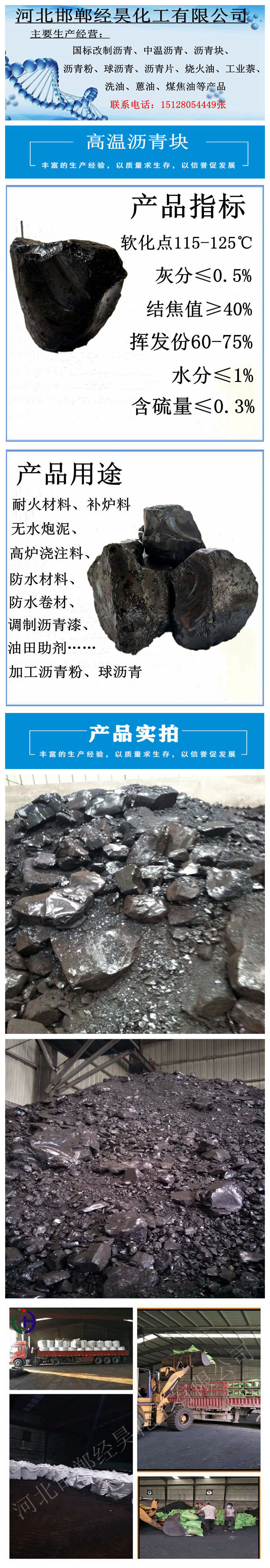 专业生产经销:煤沥青、中温煤沥青、高温煤沥青、球状沥青、改质沥青、沥青粉、片状沥青、烧火油、工业萘、洗油等产品。具有雄厚的技术实力、拥有先进的生产设备,使产品具有国际先进水平。