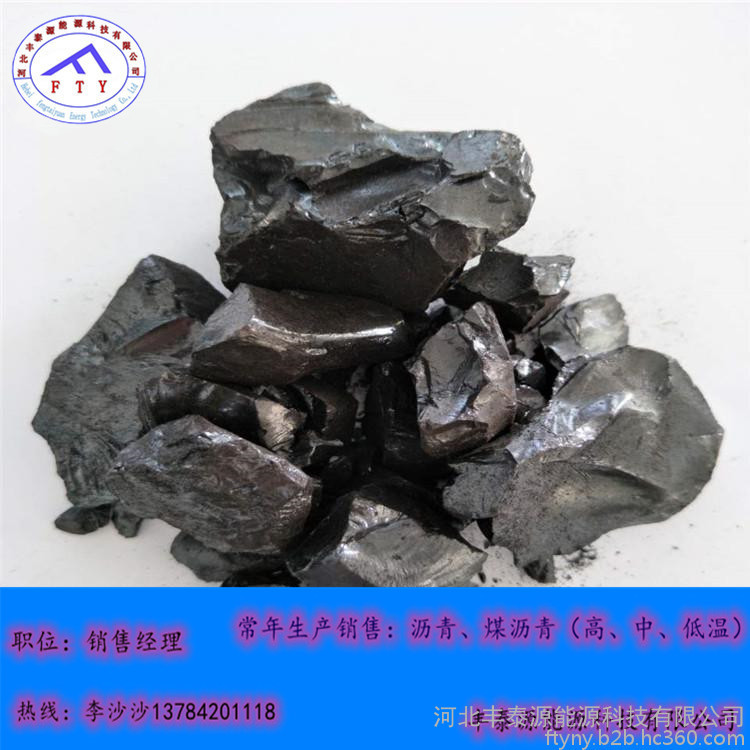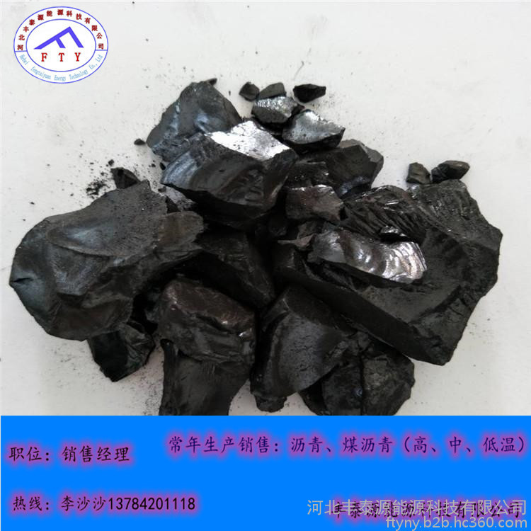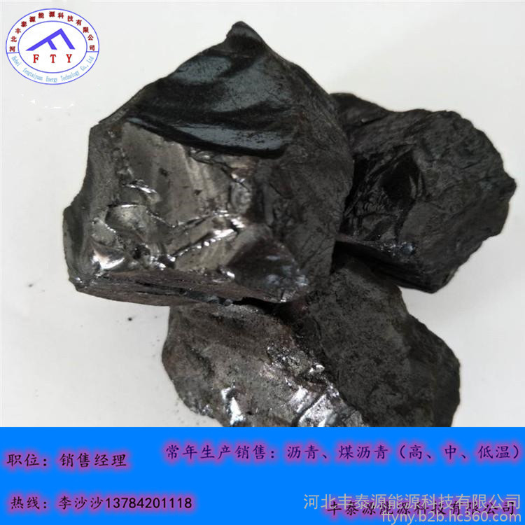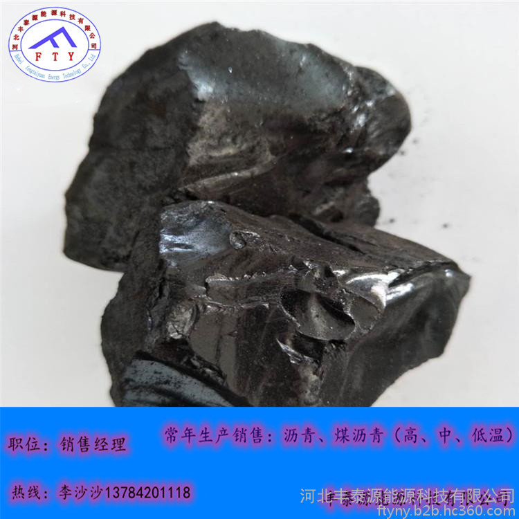 常温下为黑色脆性块状物,有光泽;有臭味,有毒,沸点:小于470℃,闪点:204.4℃,相对密度(水=1):1.15~1.25。软化点75-85,本产品符合YB/T5194-93国标沥青标准。