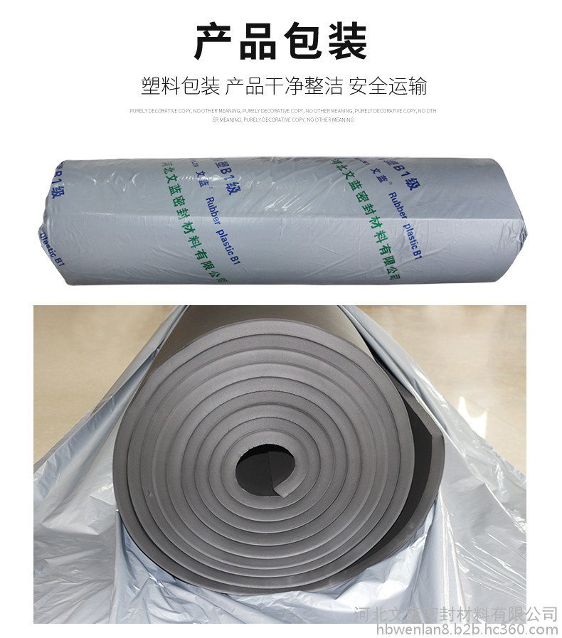 关于产品:我公司B1级橡塑海绵保温材料是我公司自产自销产品,我们严把三道关:原料关、生产关、质检关,确保产品的合格率,确保**、合格的产品送到您的手里!!!