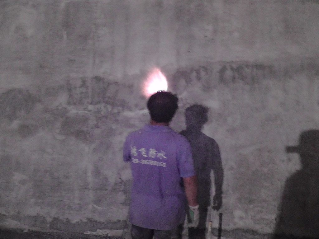 ??结构外防水采用有机硅砼保护剂和BAC高分子复合自粘防水卷材,沿顶、底板及侧墙四周外表面进行整体全包裹,以此作为外包防水层。具体作法:在结构砼外表面(不包括底板)涂刷2道THCR有机硅砼保护剂,待其全部渗入砼表面以下4~7mm后,外贴一层BAC高分子复合自粘防水卷材,防水卷材要求粘贴平整。