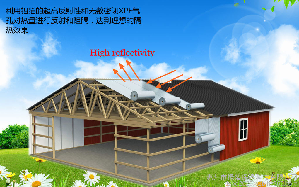 铝箔反射性优良,对紫外线有明显的阻隔作用,相对于传统的隔热材料,反射性隔热材料不仅在隔热保温的功效上有了提高,并且环保、轻便、易安装、用途广泛,不仅作为隔热保温材料广泛应用于建筑,而且在箱包、汽车、管道、制冷甚至航空航天等领域也有应用,目前已经成为良好的隔热保温材料。可接受客户要求定制。