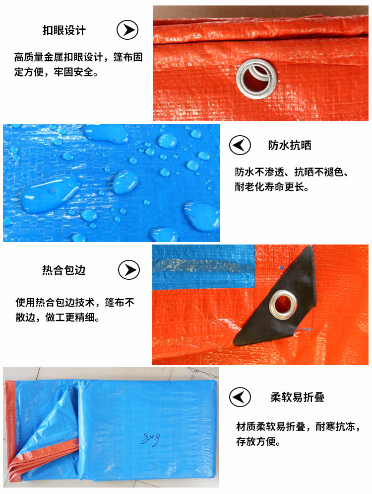 | 材质 | 聚乙烯经过高温拉丝纺织好基布,两面涂油防水层 |