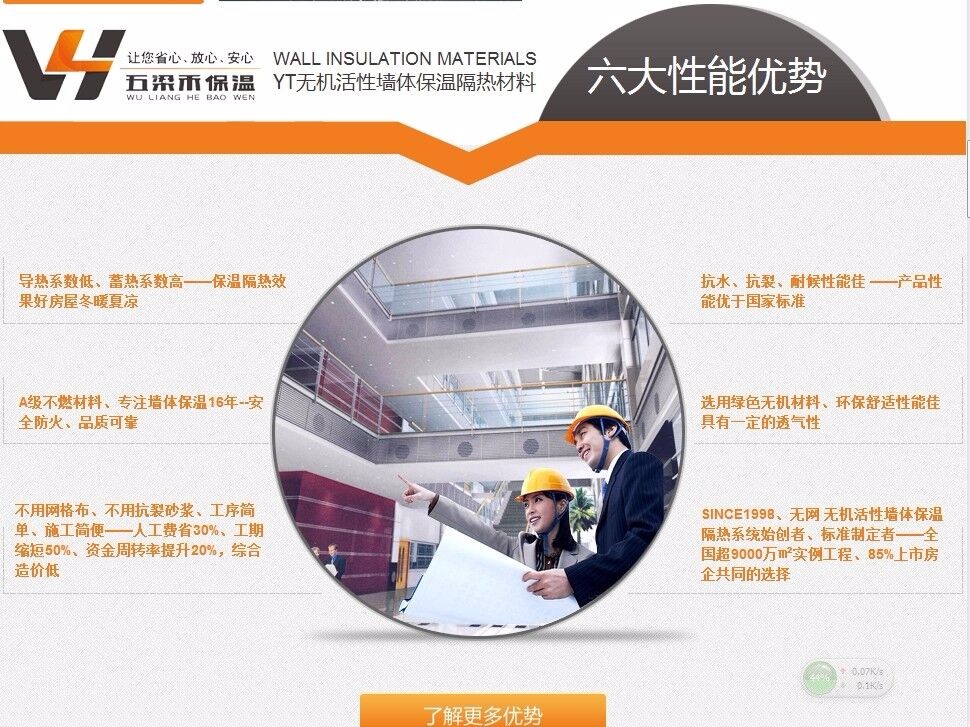 ??YT无机活性墙体保温隔热绿色节能材料精选无味、无污染的天然绿色环保**无机材料。保温层具有一定的透气性、相变性和蓄热性,人居其中,冬季不会产生闷气感,夏季不会产生烘烤感,房屋通过保温隔热达到冬暖夏凉、绿色健康、舒适宜人