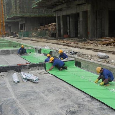 采用优质压敏反应自粘胶层,能与混凝土基层快速结合,其优异的自愈性能和局部自锁水性能大大减少渗漏机率。卷材胶料中的高分子聚合物(链段)与水泥水化物(硅酸盐网络)形成(界面)互穿网络结构,最终形成连续的机械粘结,永久地密封于水泥胶凝材料构件上。