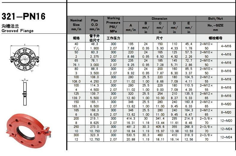 1、快捷 采取沟槽卡箍接洽和相应的管件安置管路,动工中不用要焊,不用要二次镀锌、二次安置。升高了安置速率。 2、轻便 卡箍接洽重量轻、螺栓数目少、安置方便,不用要格外技能。 3、可靠 科学公道的机关策画,奇特的C型橡胶密封圈、实现三重密封,担保了连结密封的可靠性。 4、平安 用沟槽式卡箍接洽及相应的管件安置动工,只需机械组装,无须焊接,没有明火,因此,没有焊渣 混浊管路,可确保工地平安,对禁火情况条件下的动工,尢为适宜。 5、经济 由于安置快捷、无须格外技能,安置返修率低,因而综合安置工本较法兰可减省30-50%。 6、占用空间小 沟槽式卡箍接洽连结所占空间约为法兰的70%,并且由于紧固螺栓数目少且无对象性,格外实用空间狭窄情况条件下的动工。 7、维护简略 平安可靠的产物格量,只要安置妥贴,管路都市一次试压及格,平安运行,平常无须维护,零配件数十年无须调换。 8、实用管材普遍 沟槽式卡箍接洽可以用来连结百般无缝钢管、镀锌钢管、焊接钢管、不锈钢管、铜管等金属管材。 9、可实现管路的柔性连结 柔性沟槽式卡箍接洽连结的管路呈柔性体系,能吸取管子因温度改变发生的长度位移,容许管子有必定偏移角度。