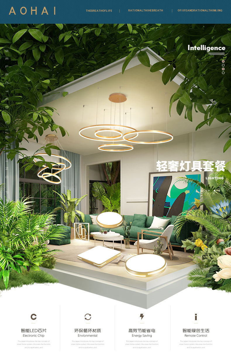 北欧轻奢LED客厅灯金色全屋套餐灯具组合创意三室两厅卧室吸顶灯
