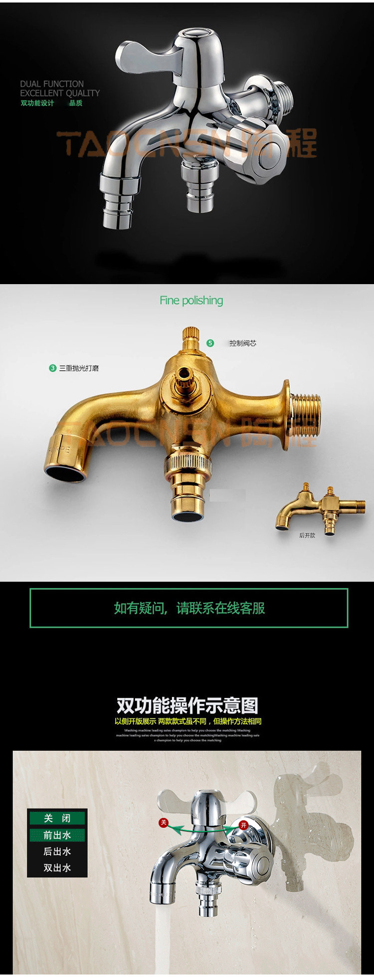 水龙头 多功能双用水龙头铜水龙头 一进二出侧开洗衣机龙头