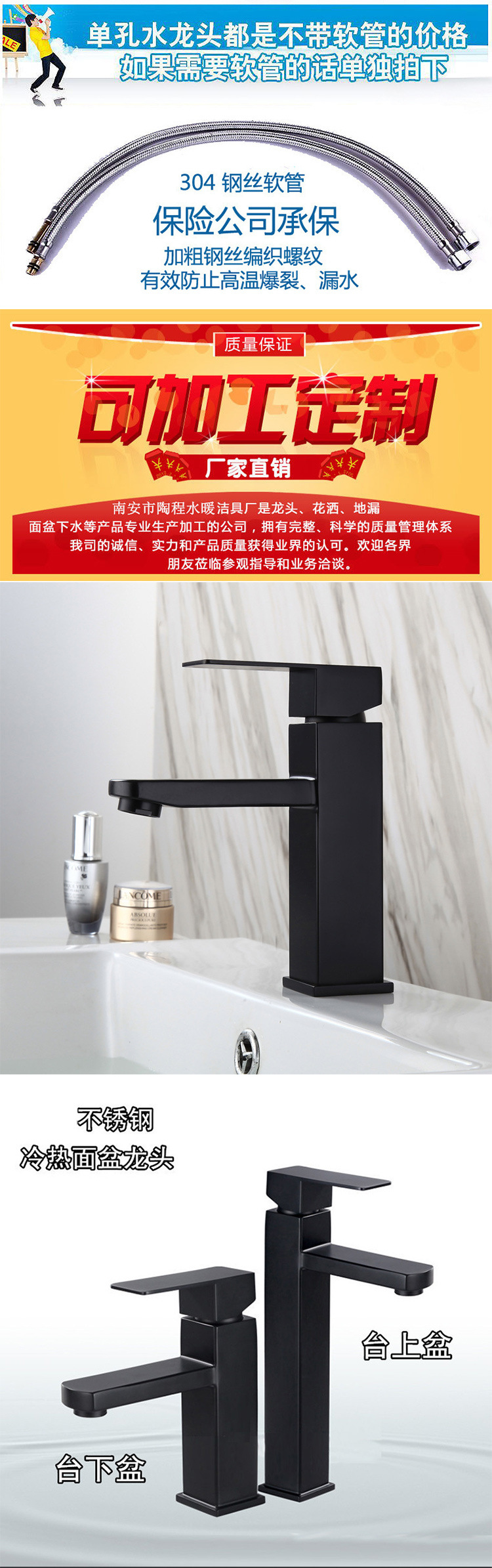 304不锈钢方形黑色烤漆冷热洗脸盆台下盆台上艺术盆面盆龙头