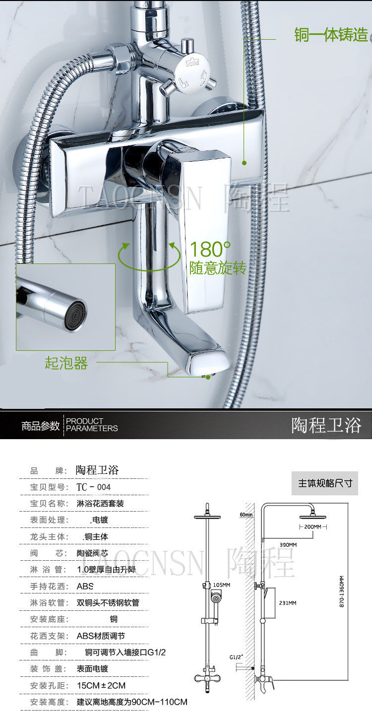 花洒套装 可升降浴室暗装淋浴套装 新款铜线条三档花洒厂家批发