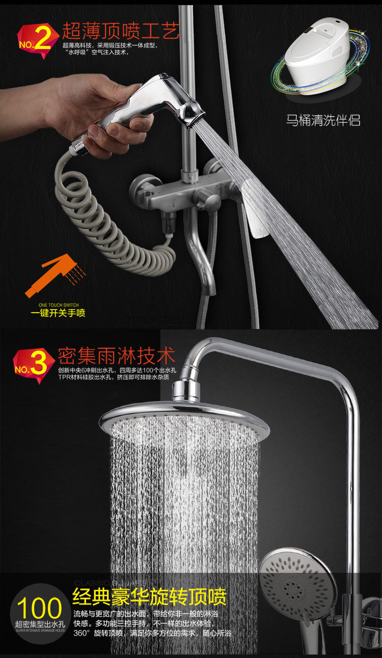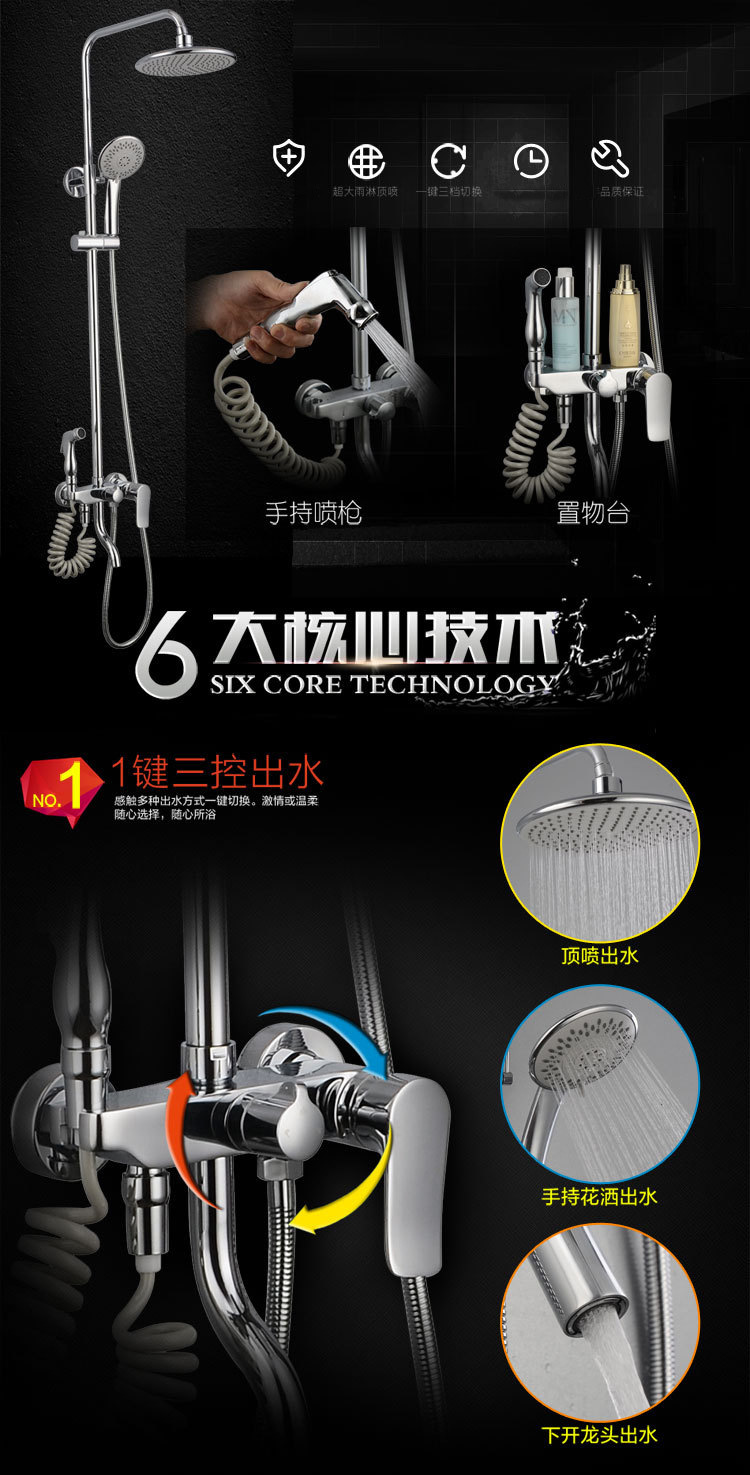 恒弛高标黄铜花洒套装 带置物架台 卫生间无铅升降淋浴花洒水龙头