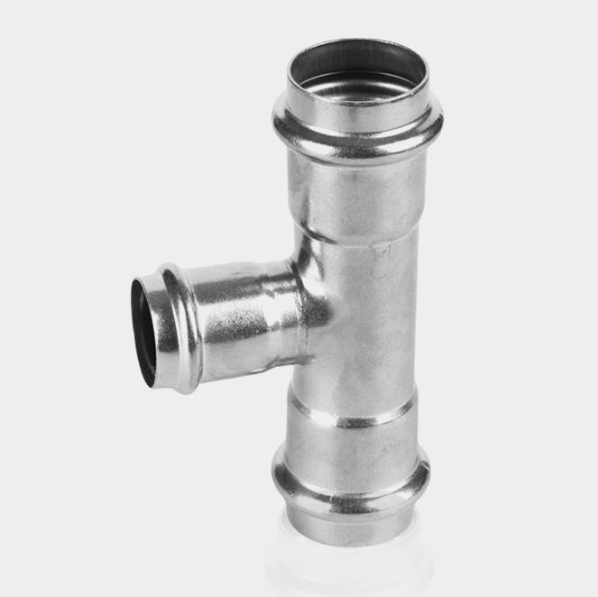 1、使用于不锈钢管材系统,双卡压式管件尺寸精度提高,允许管材的误差增大,适配性更强。