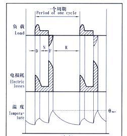 是一系列相同的工作周期,每一周期包括一段起动时间,一段恒定负载运转的时间和一段停止并断能的时间(见下图);每小时起动次数分为150、300及600次。