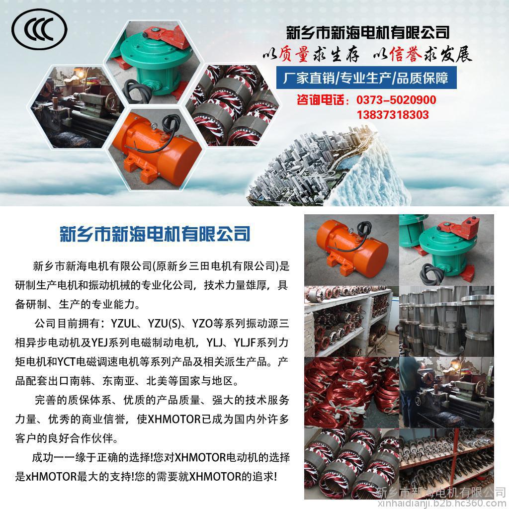 新海YZO系列振动电机具有激振力利用率高、能耗小、噪音低、寿命长,激振力可以无级调节,使用方便等优点,振动电机可以应用于:振动破碎机、振动筛分机、振动打包机、振动落砂机、振动造型机、振动打桩机、振动提升机、振动充填机、料仓的振动破拱防闭塞装置等等。广泛的应用在水电建设、火力发电、建筑、建材、化工、采矿、煤炭、冶金、轻工等工业部门。还可以组合多种振动形式。如:平旋型,涡旋型,摇动振动型,组合直线型,组合长椭圆型,复合双频型,复合双幅型等。公司网址://www.xinhaimotor.com/。