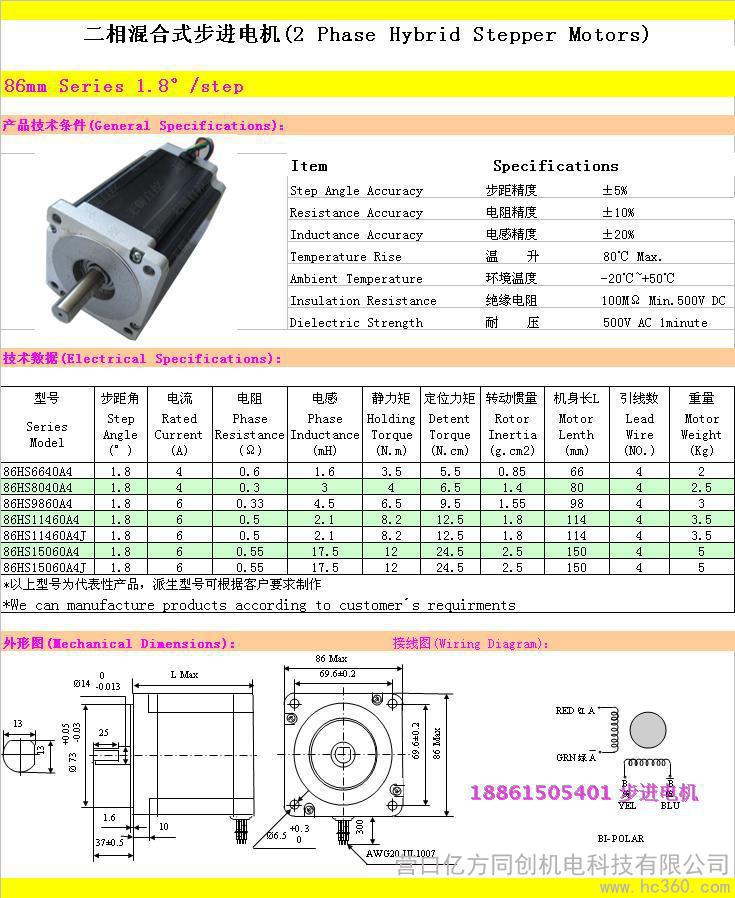 86两相步进电机/86BYGH 114mm机身 6A 双出大力矩8.2Nm 键槽/铣扁