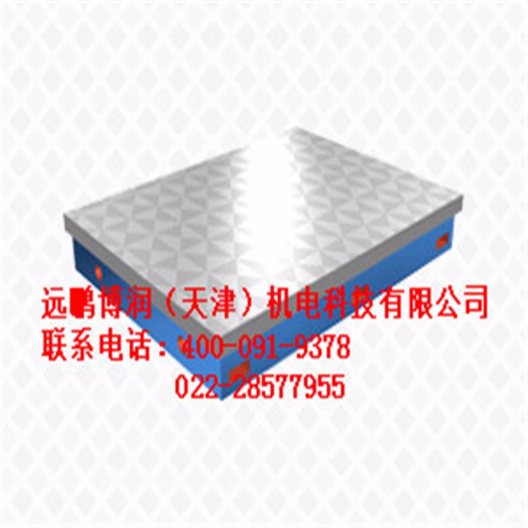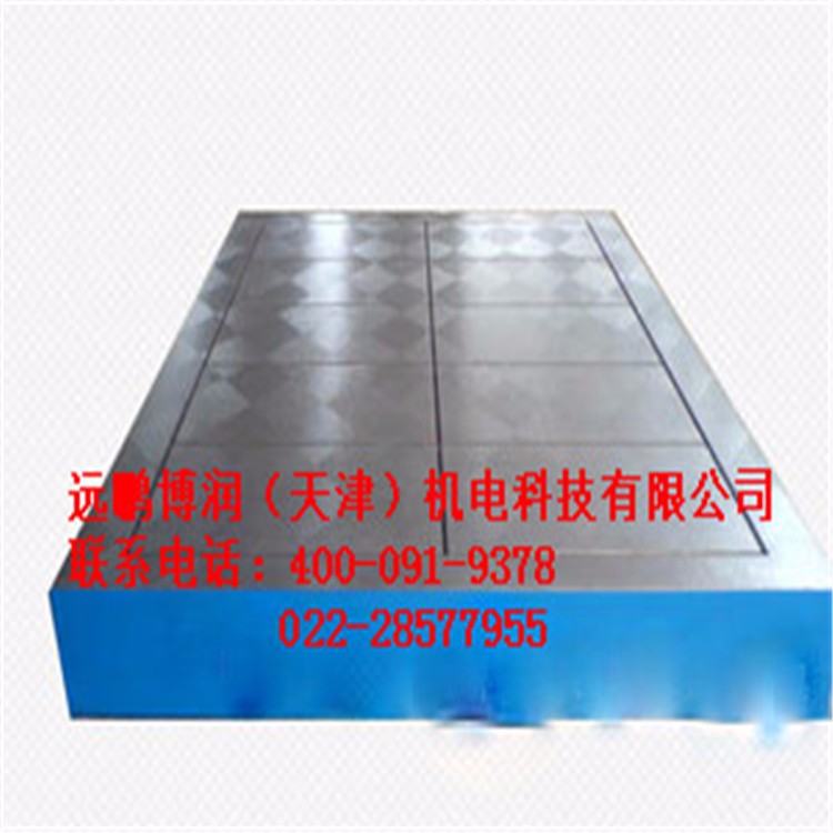 铸铁平板又称铸铁平台,外观基本上是箱体式,工作面有长方形、正方形、圆形等,材料为HT200-300,QT400-600,采用刮研工艺,工作面上可加工V形、T形、U形槽、燕尾槽、圆孔、长孔等,是用于工件、设备检测、划线、装配、焊接、组装、铆焊的平面基准量具。