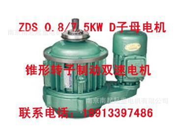 ZDS 双速子母电机是由两台锥子转子三相异步电动机通过中间慢速驱动装置联接起来的一种复合电动机。其中大功率的一台为主机(母机),另一台小功率为辅机(子机),具有快慢两种速度。本系列电机为卧式电动机,机座不带底脚,采用圆锥制动器,可频繁起动。