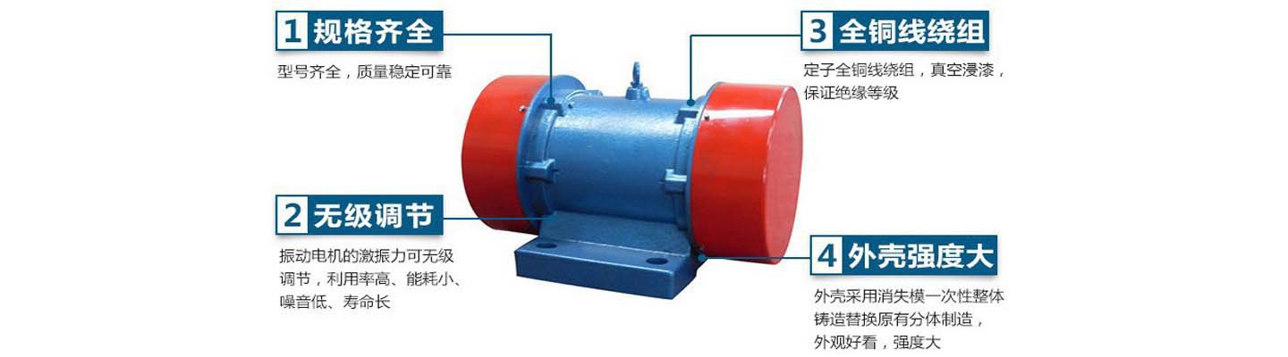 列振动源三相异步电动机的特点为:激振力与出力配合得当,激振力大;机体重量轻;体积小,机械噪音低;