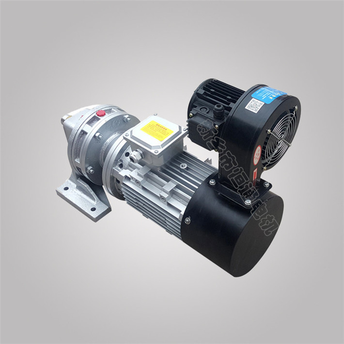 力矩电机是以恒力矩输出动力运行。具有低转速、大扭矩、过载能力强、响应快、特性线性度好、力矩波动小等特点。当负载增加时,电动机的转速能自动的随之降低,而输出力矩增加,保持与负载平衡。力矩电机的堵转转矩高,堵转电流小,能承受一定时间的堵转运行。由于转子电阻高,损耗大,所产生的热量也大,特别在低速行和堵转时更为严重,因此,电机在后端盖上装有独立的轴流或离心式风机,作强迫通风冷却,力矩电机配以力矩电机控制器进行调压调速,调速范围可达1:4,转速变化率≤10%。本系列电机的特性使其适用于卷绕,开卷、堵转和调速等场合及其他用途,被广泛应用于纺织、电线电缆、电缆卷筒、金属加工、造纸、橡胶、卷筒、塑料以及印刷机械等工业领域中需要将产品卷绕在卷筒(盘)上。卷绕的直径从开始至末了是越卷越大,为保持被卷物张力均匀(即线速度不变**要求卷筒转速越卷越小,卷绕力越卷越大