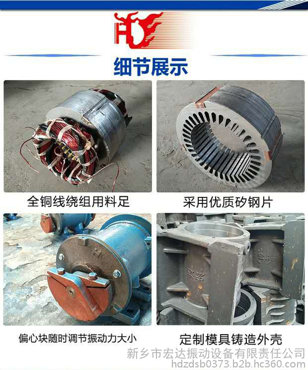 XVM-A系列振动电机是在双轴伸的转子轴两端各安装一组可调偏心块,利用偏心块旋转产生的离心力得到激振力。振动电机的激振力大、能耗小、噪声低、寿命长。它使用于料仓、料斗、溜槽的仓壁振动,还是自同步直线振动筛、振动给料机、振动输送机等各种振动机械的激振源,是冶金、矿山、建材、化工等部门的理想设备,振动筛有广泛的应用范围。