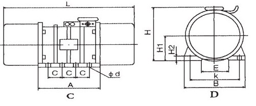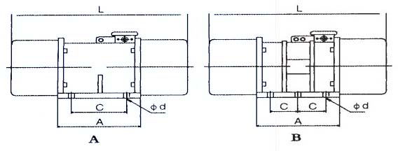 | 号 | 最大 激振力 (KN) | 转速 (Rpm) | 额定 功率 (Kw) | 额定 电流 (A) | 安装尺寸 (mm) | 外形尺寸(mm) | |||||||||