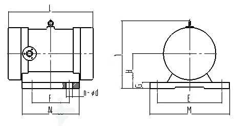 | 型号 | 激振力(KN) | 功率(kw) | 电流(A) | 振频(r/min) | 安装尺寸(mm) | 外形尺寸(mm) | 重量(Kg) | ||||||||