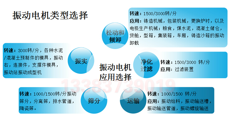 广泛的应用在水电建设、火力发电、建筑、建材、化工、采矿、煤炭、冶金、轻工等工业部门。振动电机除了可以应用与一般振动机械外,还可以组合多种振动形式。如:平旋型,涡旋型,摇动振动型,组合直线型,组合长椭圆型,复合双频型,复合双幅型等。由这些振动形式可以产生出一些过去所没有的新型振动机械。