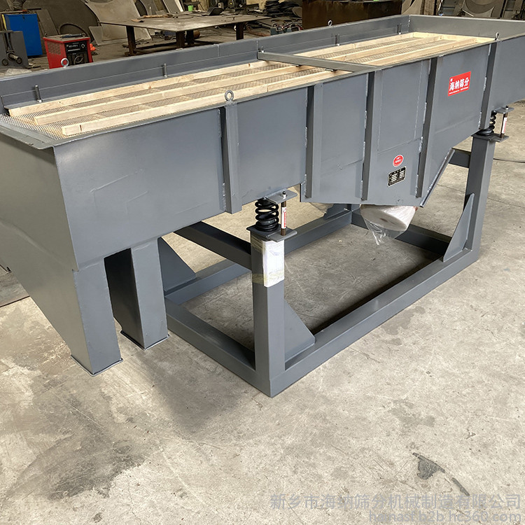 海纳筛分多层振动筛是用于泥浆固相处理的一种过滤性的机械分离设备,筛网和振子组成。筛网的粗细以目表示,一般50目以下的为粗筛网,80目以上的为细筛网。振子是一个偏心轮,在电动机带动下旋转,使筛架发生振动。由于筛架的振动,泥浆流到筛面上时较粗的固体颗粒**留在筛面上,并沿斜面从一端排出,较细的固相颗粒和泥浆液体一起通过筛孔流到泥浆池去。