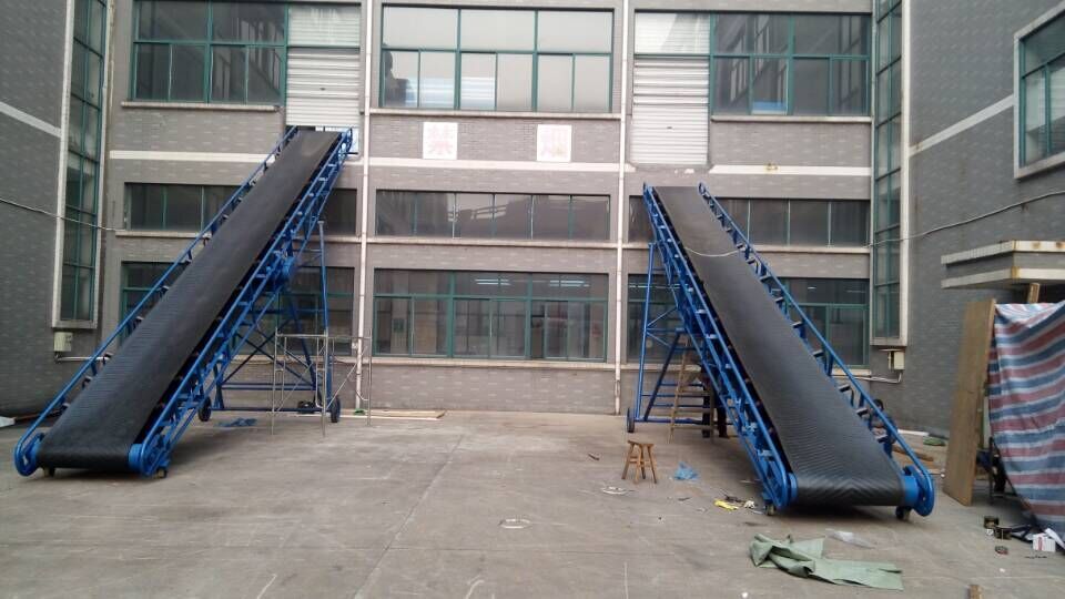 可移动式皮带输送机是一种工效高,使用,机动性好的连续输送装卸设备。主要用于装卸地点经常变更动的场所,如:港口、码头、车站、煤场、仓库、建筑工地、沙石料场、农场等,用来短途运输及装卸散料或单件重量100公斤以下的成件物品。DY型移动式胶带输送机分为可升降型及不可升降型两大类,输送带的运行靠电动滚输送带上还可增设提升挡板,占地少等优点,下过渡段机架上,保证了机器移动轻便灵活,20米, ,等规格。筒驱动,整机的升降与运行均油类物质和有机溶剂等成份的物料时,块状物和成件物品;主要用于邮政。为非机动。