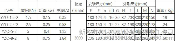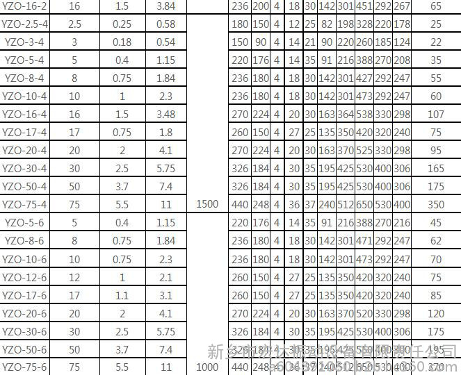 YZO系列振动电机相关技术参数: