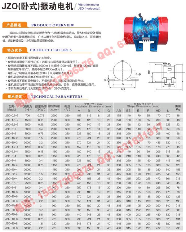 JZO系列振动电机是新型号振动电机, 特点是体积小巧, 外形美。