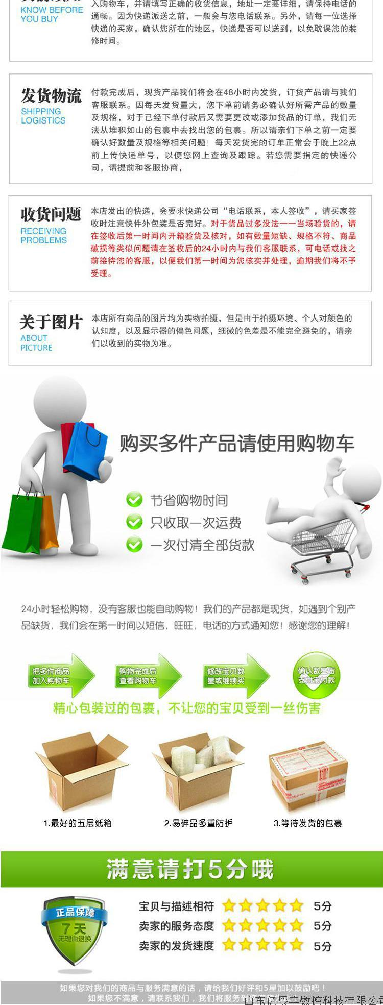 本店另有大量雕刻机配件:昌盛牌电主轴、顺通电主轴、翰琪电主轴、变频器、雷赛驱动器、步进电机、维宏卡、开关电源等供应,个个质量好,价格便宜,主要配套给雕刻机厂家,欢迎大家采购!