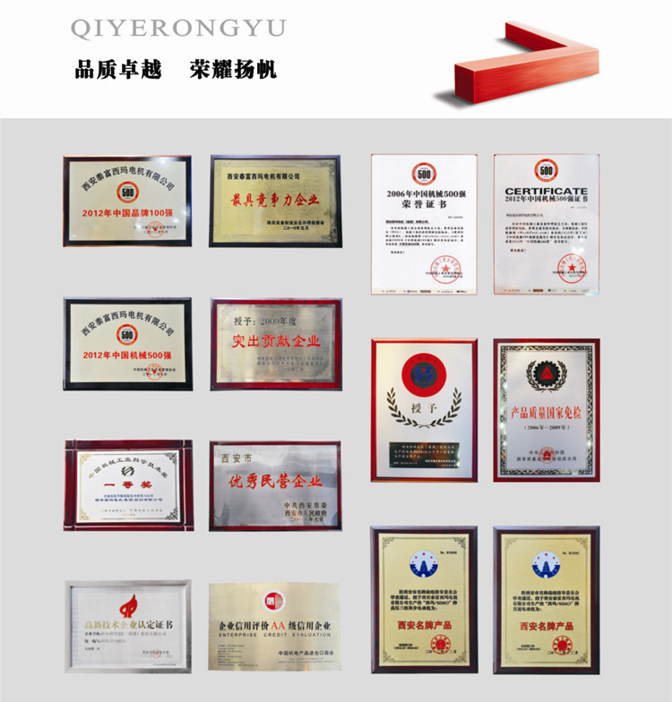 2、采用先进的设备和工艺对线圈制造进行控制,缩小了绕组端部间隙,减少了定子绕组的阻抗。西玛电机公司简介西安西玛电机有限公司(www.xiansimo.com)是在原国有企业西安电机厂基础上创办的股份制企业,是中国机械工业专业生产大中型、高低压、交直流电机的大型企业,是集电机设计制造、电气控制、机械加工、模 具、铸造、运输等自动化成套工程为一体的系统化动力系统提供商。西玛电机的主要产品包括各种高低压电机、直流电机、变频电机、及各种设备的专用电机、特殊电机、高低压配电柜、各种电机配件与电机维修保养,并且提供各种其他动力系统解决方案!我公司坚定奉行“以人为本,以质为先,以新为求,以诚为基”的价值理念,并以**的服务**的品质欢迎广大新老客户前来洽谈业务!更多关于YVF变频调速高压电机的产品信息请前往官网://www.xiansimo.com/qitagaoya/YVF.html YVF变频调速高压电机 西玛电机公司资质荣誉