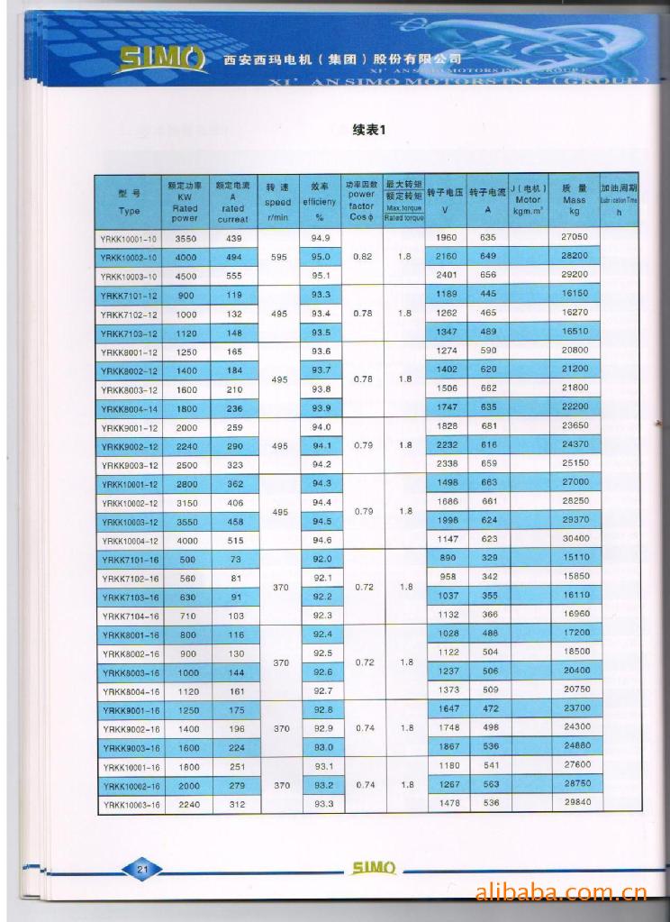 一、概述 YRKK系列6kV(710-800)高压三相异步电动机为饶线型转子异步电动机。该电动机的防护等级为IP44/IP54,冷却方法为IC611。 本系列电动机具有高效、节能、噪声低、振动小、重量轻、性能可靠、安装维修方便等优点。 本系列电动机可作驱动各种不同机械之用。如通风机、压缩机、水泵、破碎机、切削机床及其它设备,并可供煤矿、机械工业、发电厂及各种工矿企业作原动机之用。 本系列电动机结构及安装型式为IMB3,定额是以连续工作制(S1)为基准的连续定额,电动机的额定频率为50Hz,额定电压为6kV,其它电压等级或特殊要求,在订货时可与用户共同商订。 二、型号含义 YRKK7101–4:“YRKK”表示封闭带空-空冷却器绕线型转子异步电动机;“7101”表示机座中心高710mm,1号铁心长;“4”表示极数。 三、订货须知(用户订货时须注明如下要求) 电机型号(YRKK7101–4额定功率(2240kW)、额定电压(6000V)、额定频率(50Hz)、同步转速(1500r/min)、安装方式(1MB3)、防护等级(1P44)、冷却方法(IC611)、绝缘等级(F级)、环境条件(海拔1000m,环境温度40℃)。 注:2、4极电机禁止用皮带轮传动;其它极数若用户需要用皮带轮传动,事先应与制造厂协商。