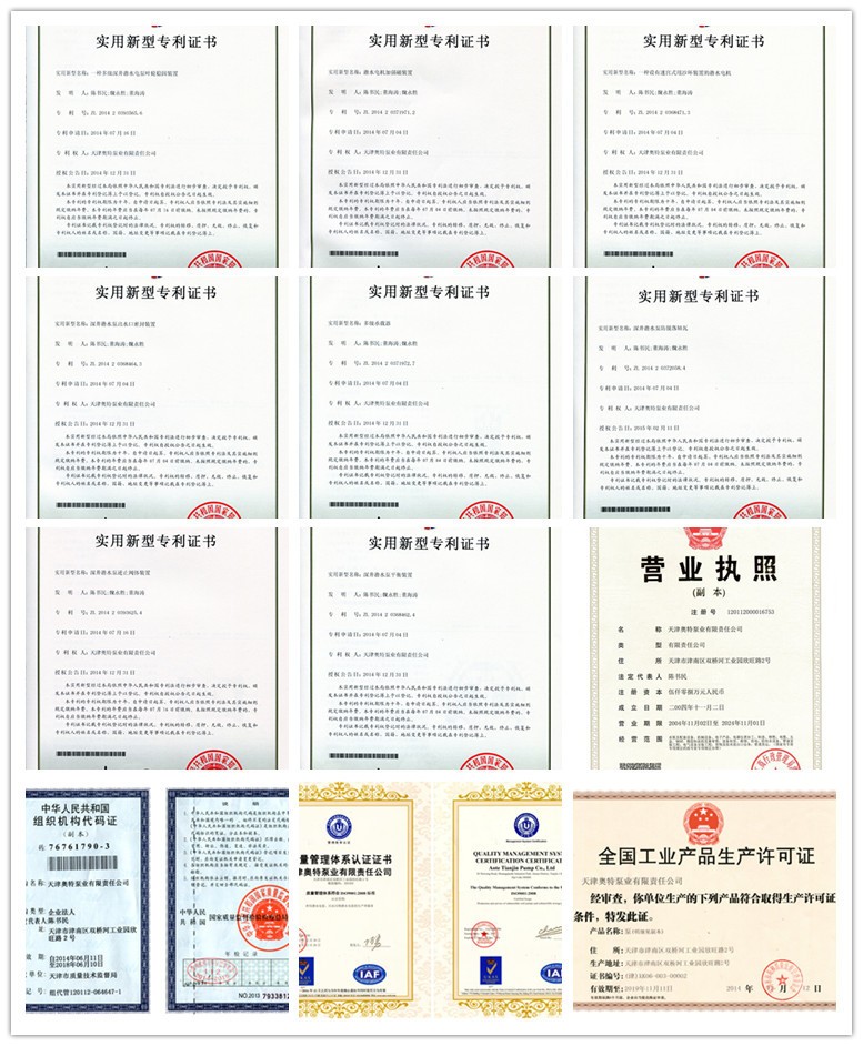 【津奥特潜水泵产品执行标准】: