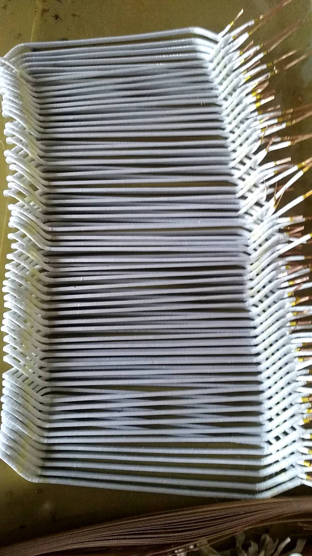 我公司加工1140V/3300伏、6000伏、10000伏各种容量电机成型线圈,变压器绕包线圈,直流电机线圈。可按客户图纸或技术参数制造防电晕高压电机成型线圈。线圈电压等级:3.3kv、6kv、10kv、10.5kv。线圈耐热等级:B级、F级、H级。绝缘等级F级交流电动机匝间绝缘,一直受到公司关注及重视,力求寻找一种绝缘厚度薄、电气与机械强度高、耐电晕性好的匝间或导线绝缘。使制作出来的高压成型线圈具有良好的耐电晕性和减薄匝间绝缘厚度,提高槽满率。选用TUI无氧铜材为原料(无氧铜杆是不含氧也不含任何脱氧剂残留物的纯铜。但实际上还是含有非常微量氧和一些杂质。按标准规定,氧的含量不大于0.02%,杂质总含量不大于0.05%,铜的纯度大于99.95%。根据含氧量和杂质含量,无氧铜杆又分为TU1和TU2铜杆。TU1无氧铜杆纯度达到**,氧含量不大于0.001%;TU2无氧铜纯度达到99.95%,氧含量不大于0.002%。),云母带采用5440桐马粉云母带,绝缘漆用1040。绝缘材料选用东绝DMD。制作加工成型线圈用户需要提供:电机型号,铁芯长度,线圈总长,铁芯内径,铁芯外径,槽数,端环内径,匝数,单排,双排,换位。直线长,跨距,1—( )槽,槽深,槽宽,槽契厚度,线规,端环是否移动位置。